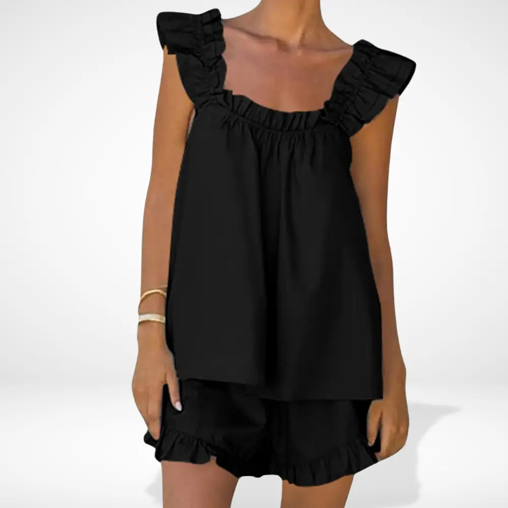 • Volants féminins – Une touche élégante sur les épaules et le bas du short.
