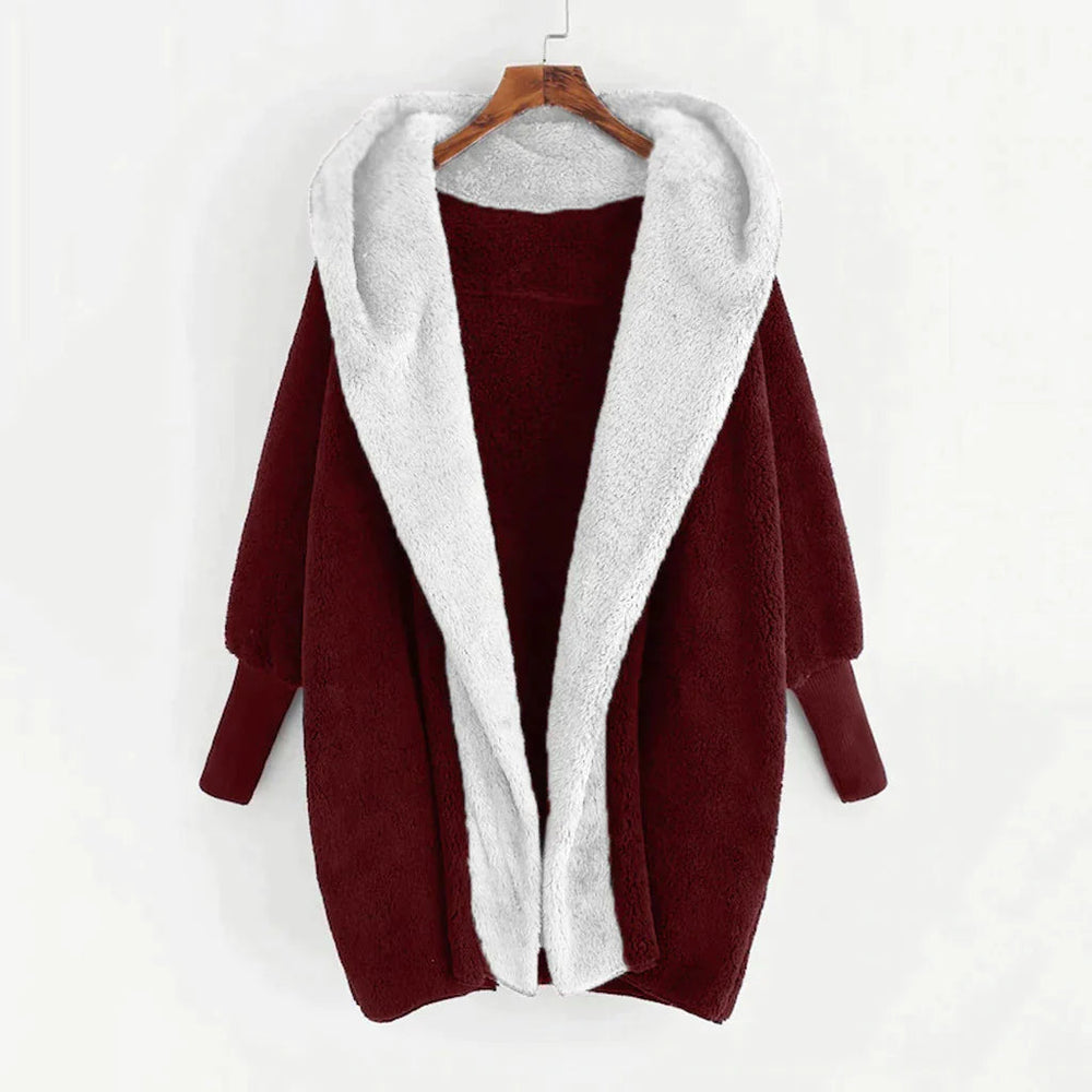 Theressa - Cardigan élégant et chaud en tissu peluche avec capuche