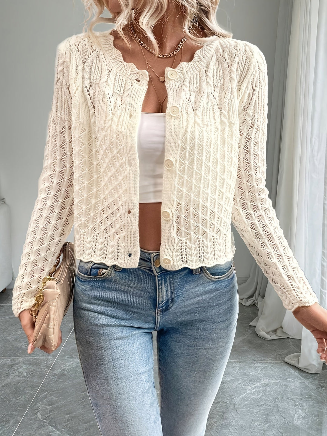 Kalila - Cardigan chic tricoté ajouré avec boutons