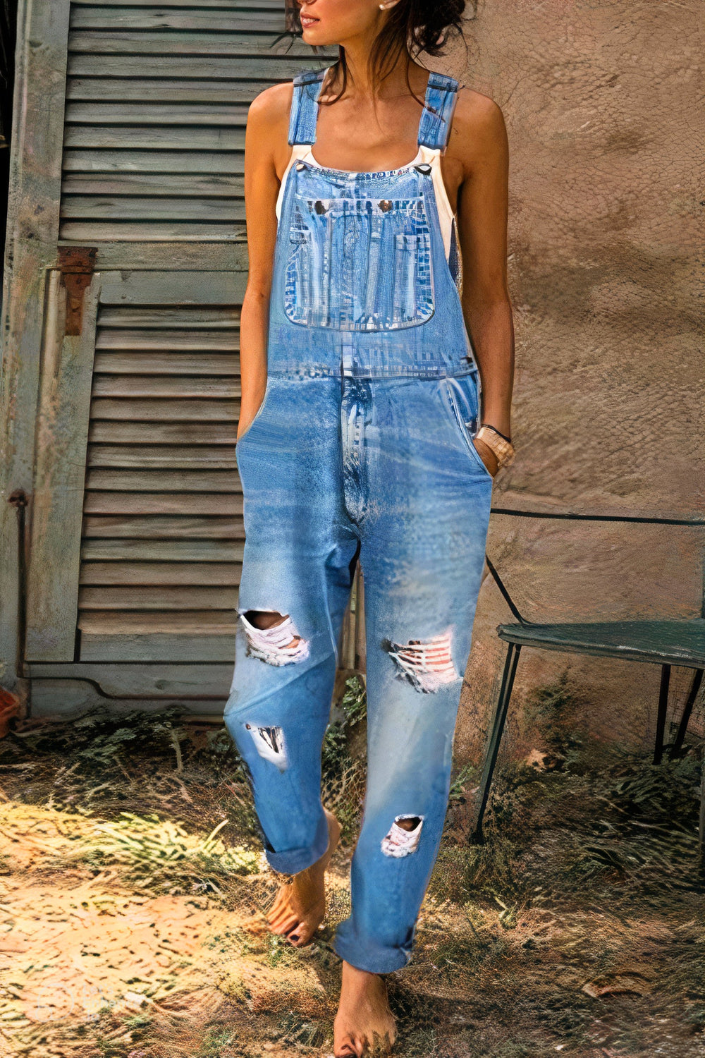 Adoptez un look urbain avec Pooja, une combinaison décontractée au style Harlan déchiré. Avec ses bretelles ajustables et sa coupe relax, elle offre confort et allure pour toutes vos sorties printanières et estivales. Idéale pour un style décontracté et tendance.